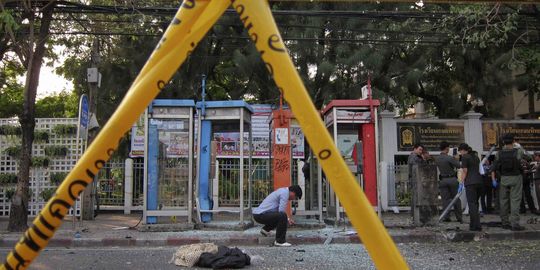 La première explosion a eu lieu mardi après-midi dans cette maison du centre de Bangkok, et trois hommes s’en sont enfuis. L’un d’eux a ensuite jeté un engin explosif à un taxi qui refusait de s’arrêter, puis un autre vers la police, provoquant une détonation qui lui a arraché les deux jambes.