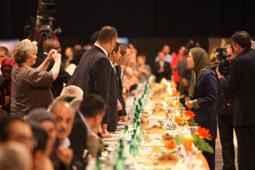 Ce commandant de l’armée syrienne libre s’exprimait via internet dans une conférence internationale arabo-musulmane suivie d’un Iftar (rupture du jeûne) en solidarité avec la Résistance iranienne et l’insurrection syrienne qui rassemblait autour de Maryam Radjavi, des centaines de personnalités musulmanes de 17 pays et des délégations parlementaires de 14 pays arabes. La conférence, présidée par Sid Ahmed Ghozali, ancien premier ministre algérien, a appelé à la condamnation de l’Irak par l’Assemblée générale de l’ONU, l’Organisation de la conférence islamique et la Ligue arabe, pour sa répression des Moudjahidine du peuple d’Iran (OMPI) dans les camps d’Achraf et de Liberty. Des personnalités comme Patrick Kennedy, la vice-présidente du sénat français Bariza Khiari, des représentants de la communauté musulmane de France avec notamment Khalil Meroun recteur de la mosquée d’Evry, et des délégations du Moyen-Orient et d’Afrique du nord, ont pris la parole.