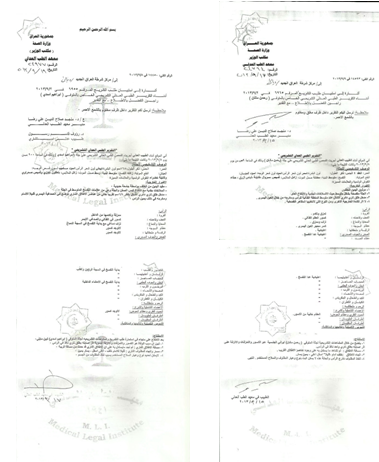 6- Il faut noter que puisque les corps des victimes avaient été remis à la médecine légale de Bagdad et bien que les autopsies fussent encore incomplètes, le bureau de la médecine légale avait demandé à l’avance au magistrat instructeur Azamiyeh d’autoriser l’enterrement des victimes au cimetière de Bagdad, faute de parents et parce que personne n’était venu les réclamer.