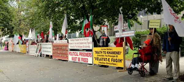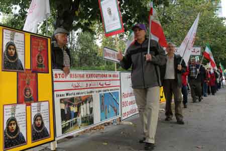 Les manifestants portaient des pancartes sur lesquelles on pouvait lire : « Les prisonniers politiques doivent être libérés ». Ils ont demandé une action internationale pour faire cesser la torture et l’exécution des prisonniers politiques et des minorités religieuses et ethniques.