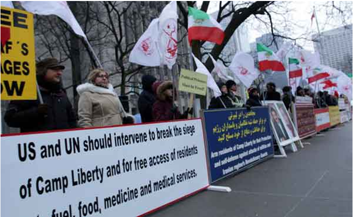 Rassemblés devant les ambassades des États-Unis et au centre-ville, les manifestants ont également appelé à ce que le camp Liberty soit reconnu comme un camp de réfugiés sous la supervision directe des Nations unies.