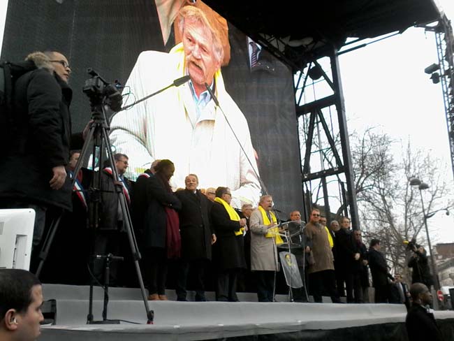 Gilbert Mitterrand :Les dictateurs n’ont pas leur place dans le monde quand ils tuent les hommes et les femmes. C’est une occasion de dire à Rouhani ce qu’on pense, de lui dire en face. Ce serait criminel de ne pas le faire. On a le droit de comprendre que l’Iran a toute sa place dans le monde, c’est un grand peuple, on a besoin de l’Iran, mais il ne faut pas que ce soit à l’encontre du peuple iranien. Ce serait coupable de ne pas lui dire et ce serait coupable de continuer à discuter avec lui s’il n’en tient pas compte.”