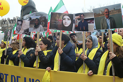 Les slogans continuent : “À bas, à bas la dictature”, “Iran hangs children, 160 minors on death row”, etc. De nombreux journalistes et photographes sont là pour couvrir l’évènement.