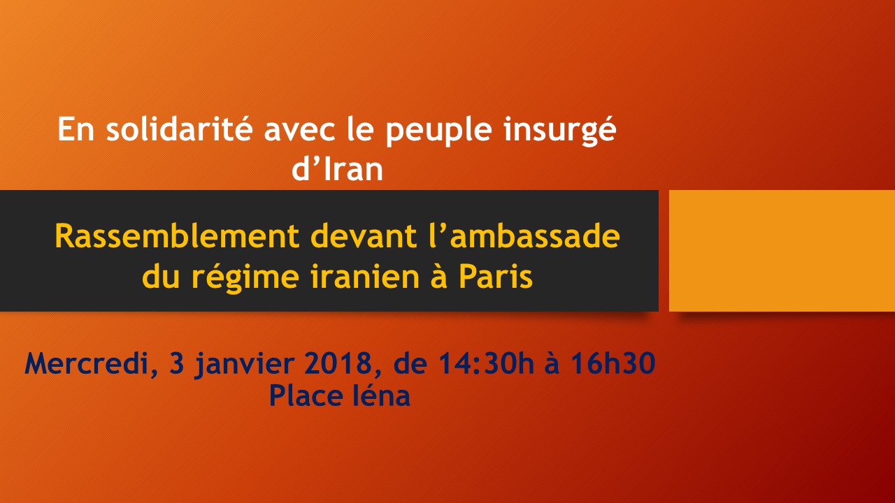 Les Iraniens à travers le monde expriment leurs solidarités avec les revendications du peuple iranien en révolte contre la dictature religieuse au pouvoir en Iran. Des rasemblements sont prévus à Paris, Stochokolm, Londres, Berlin, Hambourg, Munich, Cologne, Rome, Bruxelles, Oslo, Vienne, La-Haye.