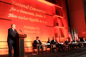 La convention du weekend des Irano-Américains de 37 Etats avaient été organisée à l’origine pour remercier ceux qui avaient aidé à sortir la résistance de la liste noire et pour discuter de la réinstallation de 3100 opposants du camp qui porte le nom paradoxal de « Liberty », prés de l’aéroport international de Bagdad.