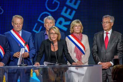 « Bonjour tout le monde. Je suis Sylvie Fassier et je représente aujourd’hui la délégation française et avant tout je serai le modérateur de cette cérémonie et j’en suis fière parce que la France vous soutient. Nous aurons l’occasion aujourd’hui de vous présenter des centaines de personnalités, et plus de 90 qui vont pouvoir s’exprimer.