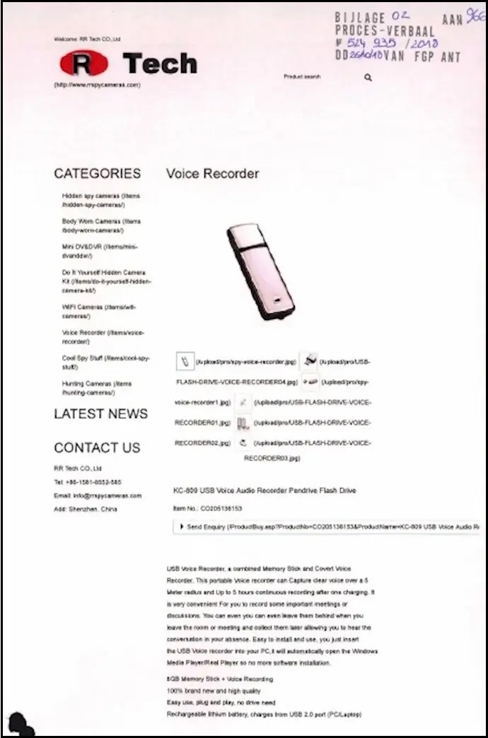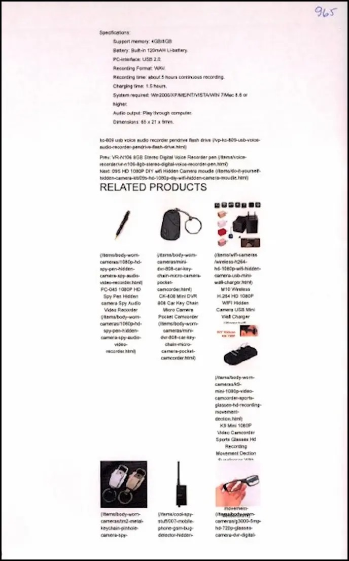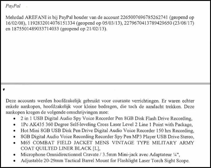 Arefani a également utilisé plusieurs comptes PayPal pour acheter divers accessoires d’espionnage et d’enregistrement.