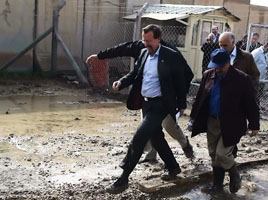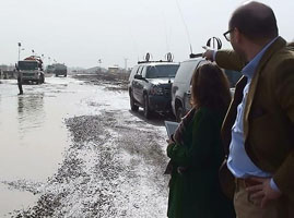 Ce matin [30 janvier 2013], lors d’une brève visite surprise qui n’a pas dépassé 40 minutes, le Représentant spécial du Secrétaire général de l’ONU (RSSG) Martin Kobler a visité des parties du camp Liberty, qui est recouvert par les eaux usées suites aux récentes inondations.