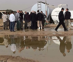 15. Le RSSG a répondu aux plaintes des résidents sur les conditions dans le camp en leur montrant une photo de sa propre résidence dans la zone verte de Bagdad où l’eau s’était également accumulée. Les résidents ont déclaré que leur problème n’était pas simplement la pluie, mais l’absence d’infrastructures et le débordement des réservoirs d’eaux sales qui contamine tout l’environnement avec les eaux usées. Les résidents ont également stipulé qu’il aurait mieux valu que le RSSG leur montre des photos de sa résidence en Allemagne dans la mesure où c’est exactement en raison des mauvaises conditions en Irak que le salaire des employés de l’ONU en Irak est doublé, mais qu’eux ont été expulsés de leur foyer et emmenés dans cette prison.