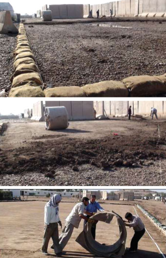 45 – Le rapport déclare que Liberty dispose de « nombreux espaces de loisirs ». Quiconque est allé au camp Liberty sait qu’il est dépourvu de toute sorte d’aménagement de loisirs, comme des terrains de sport. Pour construire un mini terrain de football, les résidents ont dû ramasser toutes les pierres et le gravier et creuser le terrain environnant pour déplacer 25 mètres cubes de terre afin de la répandre sur le sol et de l’élever de 10 centimètres au-dessus du gravier.