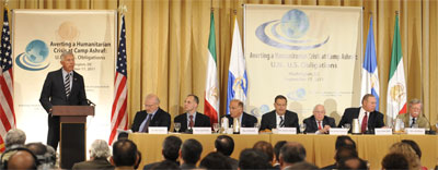 Dr Allan Gerson, ancien avocat en chef de la délégation américaine à l’ONU était le modérateur de la conférence. Il a dit notamment dans son allocution : « Notre conférence est intitulée ‘les obligations de l’ONU et des Etats-Unis pour éviter une crise humanitaire’ (…) Il s’agit d’éviter la mort et une boucherie.  Ce qui s’annonce  [au camp d’Achraf] n’est pas simplement une catastrophe humanitaire, mais la mort, la destruction et l’auto-humiliation pour les Etats-Unis à une grande échelle, car si ces gens venaient à être rapatriés en quelque sorte en Iran, ce serait un auto-humiliation pour les Etats-Unis qui prendrait des générations à s’effacer. »