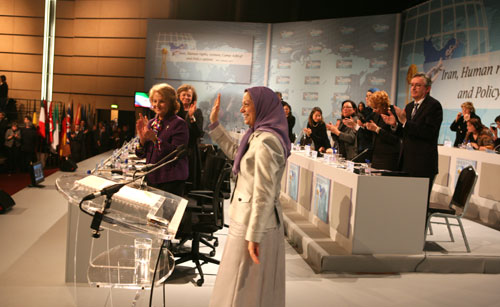 Je suis heureuse de vous voir. Cette conférence se déroule à un moment rare de l’histoire du Moyen-Orient et de l’Afrique du Nord. De Tunis au Caire, de Benghazi à Téhéran, les peuples se sont soulevés. Tripoli avance vers la liberté au prix de centaines de morts. Bagdad relève la tête de dessous les décombres de la guerre, de la trahison et de la complaisance en criant sa colère. A Téhéran, la jeunesse intrépide enraye la machine répressive. Je salue tous les insurgés de la démocratie et de la liberté.