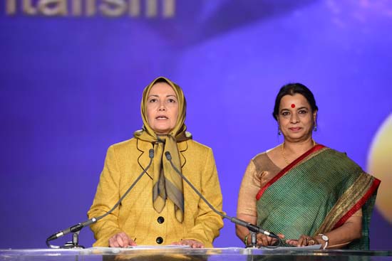 Parmi les orateurs se trouvait Linda Chavez, ancienne directrice de la maison blanche pour la communication avec le public et experte de la Sous-Commission des Nations Unies pour les droits de l’Homme ; Rama Yade, ancienne ministre française des droits de l’Homme ; Ingrid Betancourt, ex-candidate présidentielle colombienne ; Rita Sussmuth, ancienne présidente du Bundestag allemand ; Ranjana Kumari, directrice du Centre for Social Research et 5e lauréate du Prix Leadership Lotus de l’Inde ; Nagham Ghadri, vice-présidente de la Coalition nationale syrienne ; Rashida Manjoo et Yakin Erturk, anciennes Rapporteurs spéciaux des Nations Unies sur la Violence contre les femmes ; Christine Ockrent, journaliste française, écrivain et célèbre commentatrice de télévision ; Beatriz Becerra, membre du Parlement européen d’Espagne ; Stefania Pezzopane, sénatrice italienne ; Marguerite Duran Vadell, sénatrice espagnole ; Fatiha Bakkali au nom de femmes législatrices du Maroc ; Najima Thay Thay, ancienne ministre de l’Education et de la Jeunesse au Maroc ; Anissa Boumediene, ancienne première dame d’Algérie, spécialiste de l’Islam et juriste ; Azza Heikal, écrivain égyptienne et professeur d’arabe à l’université affilié à la Ligue arabe et chef de file du Conseil des femmes des tribus arabes ; Majedeh Novaishi, vice-présidente de la Coalition des représentants des femmes arabes d’Égypte ; Drita Avdyli, ancienne vice-première ministre et actuelle présidente de la chambre nationale de médiation, Diana Culi, écrivain journaliste et femme politique, Sevim Arbana, fondatrice de l’organisation utile aux femmes albanaises d’Albanie ; une délégation de juristes, dont l’ancien juge de la ICC Fatoumata Dembélé Diarra (Mali), Kirsty Brimelow et Sara Chandler (Grande-Bretagne), présidente de la commission des droits de l’Homme de la fédération de l’association des bars européens ; Maria Candida Almeida, avocate générale à la Cour suprême du Portugal ; Zinat Mirhashemi, membre du Conseil national de la Résistance iranienne et membre du comité central de l’organisation Cherik-hay-e Fedaii (OIPFG) ; Safora Sadidi, membre du conseil central de l’OMPI ; et un grand nombre d’autres présidents d’associations et de communautés de jeunes soutenant la Résistance iranienne.