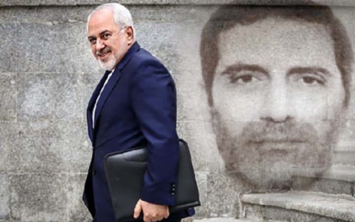 Le ministre des Affaires étrangères des mollahs, Javad Zarif (à gauche), le diplomate terroriste iranien Assadollah Assadi (à droite)