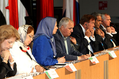 Des personnalités politiques éminentes des Etats-Unis et d’Europe, notamment Tom Ridge, premier secrétaire d’Etat à la sécurité intérieure des Etats-Unis et ancien gouverneur de Pennsylvanie, ont pris la parole. Tarek Hachemi, vice-président irakien a envoyé un message dans lequel il aborde les attaques à la roquette contre le camp Liberty par des miliciens liés au régime du guide suprême et avec le soutien du gouvernement Maliki. « L’ONU, a-t-il dit, aurait dû intervenir et contraindre le gouvernement Maliki à assurer la sécurité et la vie dans la dignité dans ce camp, soit de le fermer définitivement et de ramener les habitants à Achraf. Bien que la seconde solution pratique soit la meilleure, l’ONU n’a pris aucune mesure. »
