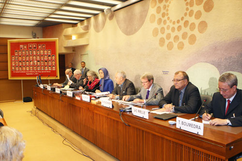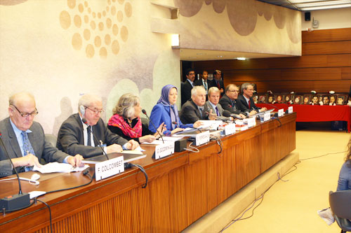 Parmi les intervenants, figuraient outre Maryam Radjavi, présidente élue de la Résistance iranienne, Bernard Kouchner, ancien ministre française des Affaires étrangères, Sid Ahmed Ghozali, ancien premier ministre algérien, Dr. Jean-Charles Rielle, président du conseil municipal de Genève, Christiane Perregaux, vice-présidente de l’assemblée constituante de Genève, Tahar Boumedra, ancien directeur des droits de l’Homme de la MANUI en Irak, le Pr. Goodwin Gil, juriste et professeur à Genève de droit humanitaire, et François Colcombet, magistrat et ancien parlementaire français.