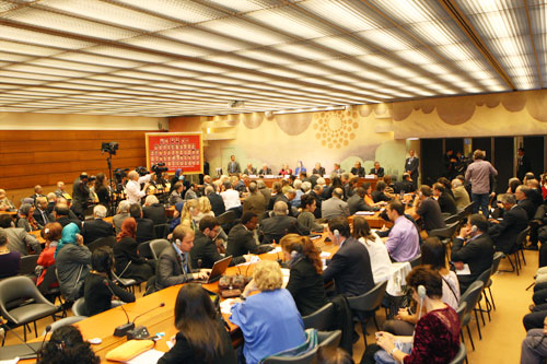Lors d’une conférence internationale au siège de l’ONU à Genève le 19 septembre, Maryam Radjavi, Présidente élue de la Résistance iranienne, a appelé les USA et l’ONU, en particulier Mme Pillay la haut commissaire des droits de l’homme, à prendre des actions urgentes pour assurer la libération des sept Achrafiens pris en otages, dont six femmes. Il ne fait aucun doute, a-t-elle dit, que les otages sont en Irak et détenu dans une prison près de l’aéroport de Bagdad par les forces aux ordres du premier ministre irakien Maliki. Les déclarations contradictoires des autorités irakiennes visent seulement à préparer le terrain à les livrer au fascisme religieux au pouvoir en Iran.