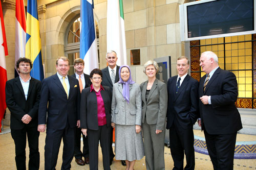 La conférence sous la houlette de Struan Stevenson, président de la délégation du Parlement européen pour les relations avec l’Irak a donné la parole à : Maryam Radjavi, présidente élue de la Résistance iranienne, Alejo Vidal-Quadras, vice-président du Parlement européen, Howard Dean, président du parti démocrate américain (2005-2009), le général Hugh Shelton, chef de l’état-major des armées américaines (1997-2001), John Bruton, premier ministre irlandais (1994-19997)  et ambassadeur de l’UE aux Etats-Unis (2004-2009), Rita Sussmuth, ancienne présidente du Bundestag, Gunter Verheugen, commissaire européen (1999-2010), Patrick Kennedy, Congressman américain (1995-2011), Dirk Claes, sénateur belge et président du Comité belge parlementaire pour un Iran démocratique et José Bové, eurodéputé français.