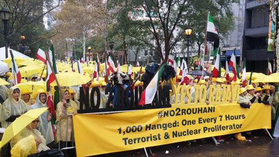 Les Iraniens venus à New York de 37 Etats américains ont déclaré que Rohani ne représente pas le peuple iranien et qu’il a été un responsable clé dans la quête clandestine du régime pour se doter d’armes nucléaires, et qui plus tard a trompé la communauté internationale.