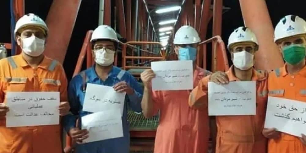 Des milliers de travailleurs contractuels sont actuellement en grève dans plus de 105 raffineries, entreprises et complexes industriels affiliés aux centrales pétrolières, gazières, pétrochimiques et électriques, notamment la raffinerie de Bidboland, Behbahan, phase 2, South Pars phase 14 Omran-e Sana’t, Asalouyeh Petrochemical, Exir Sana’t phase 14, South Pars Oil and Gas Companies, Asaluyeh Gas Field, Société pétrochimique Jahan Pars de Téhéran, Remise en état de la raffinerie de pétrole de Téhéran, Raffinerie d’Adish Sud de Téhéran, Raffinerie de Tondguvan de Téhéran, tous les travailleurs des phases 11, 12, 13 et 14, et les travailleurs contractuels des 24 autres phases d’Asalouyeh, Raffinerie d’Abadan, Raffinerie de Bidkhun d’Asalouyeh, Opérations maritimes Iran – Kharg, Personnel de la centrale électrique de Ramine dans la ville d’Ahwaz, révision 15 et 16 de la province de Bouchehr, Jahan Pars Ilam, raffinerie de gaz NGL3100 de Dehloran, pétrochimie de Lordegan, raffinerie de gaz Lamard de Parsian, raffinerie Jofeyr d’Ahvaz et raffinerie ODCC d’Abadan.