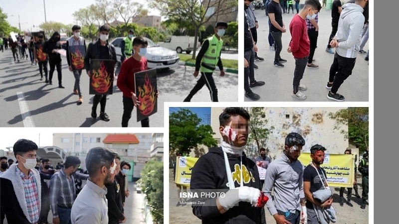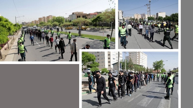 Dans une tentative honteuse d’humilier en public des jeunes arrêtés lors de la fête du feu (Chaharchanbeh Souri) le 16 mars 2021, le régime des mollahs a fait défiler 34 jeunes dans les rues de Machad, capitale de la province de Khorassan-Razavi (nord-est), le jeudi 22 avril 2021. Ces jeunes ont été forcés de défiler dans les rues avec des pancartes portant des excuses. Selon les médias officiels, ce châtiment inhumain et médiéval a été exécuté «en présence du juge Hadi Shariatyar, adjoint du procureur de la révolution de Machad ». Le journal d’État Hamshahri a parlé de cet acte répugnant comme de « la parade des accusés du Festival du feu » dans les rues de Machad dans le cadre de « mesures préventives prises par l’adjoint aux affaires sociales ».