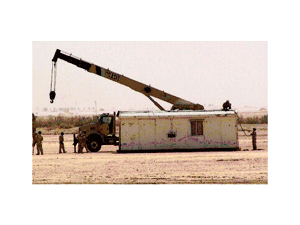 Les forces irakiennes ont amené les préfabriqués avec des grues et des camions militaires, ainsi que les équipements de construction nécessaires. Elles préparent aussi les mâts pour les nouveaux haut-parleurs.