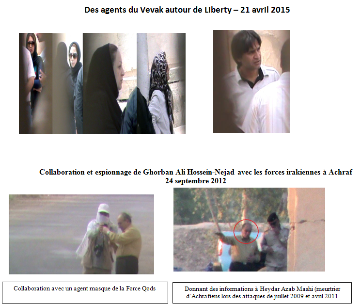 Le 21 avril, pour la deuxième semaine successive, les hommes du comité chargé de la répression des Achrafiens au gouvernement irakien, ont amené un groupe d’agents des services de renseignement du régime iranien, le Vevak, et de la Force terroriste Qods au poste de police du camp Liberty sous le couvert de parents des habitants.