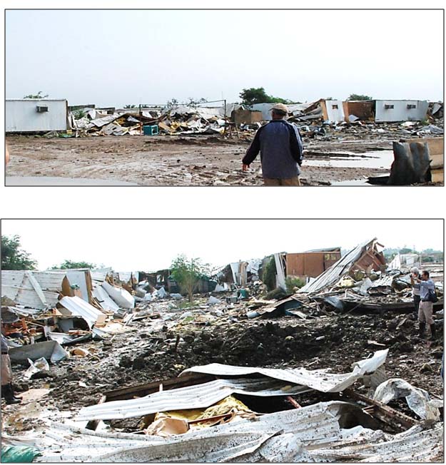 Cela comporte 131 baraquements pulvérisés et 226 désormais inutilisables. Une dizaines de réfectoires ont été totalement dévastés ou ne peuvent plus être utilisés. 275 climatiseurs ont aussi été anéantis.