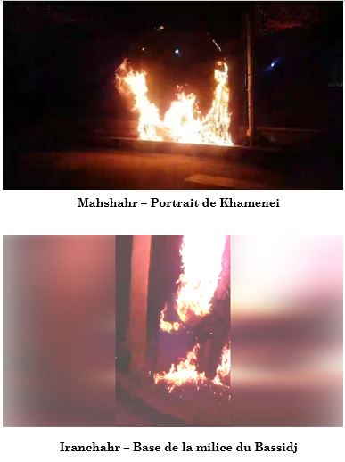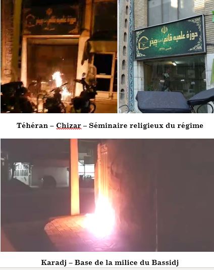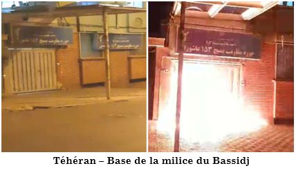 Par ailleurs, dans la matinée de ce 31 décembre, de jeunes insurgés ont incendié des bases de la milice du Bassidj à Téhéran, Karadj et Iranchahr, ainsi qu’un séminaire de mollahs à Téhéran. A Mahshahr, un portrait de Khamenei est parti en fumée.