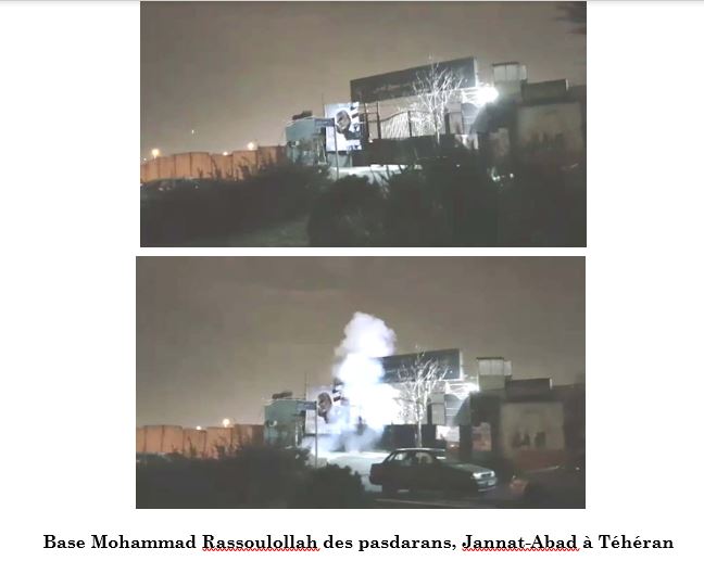 Dans les premières heures du 19 janvier 2020, la jeunesse insurgée a visé la base dite « Mohammad-Rassoulollah » de la milice du Bassidj, dépendant des pasdarans, dans le quartier de Jannat-Abad à Téhéran.