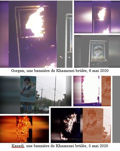 En outre, des portraits d’Ali Khamenei (le guide suprême du régime) et de Qassem Soleimani (le commandant de la force du Qods récemment éliminé) ont été brûlées dans plusieurs villes, dont Kerman, Kachan, Karadj et Gorgan
