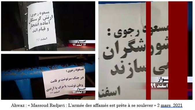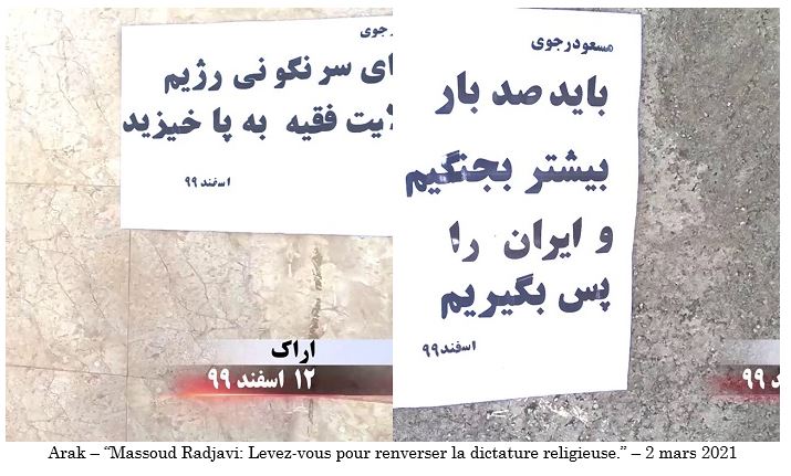 Parmi les slogans figuraient : « Saravan n’est pas seule », « Maryam Radjavi : Vive la population héroïque de Saravan », « Maryam Radjavi : J’appelle tous les jeunes rebelles, en particulier au Sistan-Baloutchistan, à se soulever pour soutenir la population de Saravan », « Massoud Radjavi : Les insurgés forgent la victoire », « Massoud Radjavi : le soulèvement des transporteurs de carburant détruira les racines du régime clérical », « Saravan n’est pas seule, nous luttons tous ensemble pour la liberté et nous nous tiendrons jusqu’au dernier souffle », « Maryam Radjavi : Le régime clérical devra un jour faire face à la justice pour le massacre barbare de la population héroïque de Saravan », « Massoud Radjavi : les gardiens de la révolution doivent être dissous », « A bas Khamenei, à bas les pasdarans », « Vive Saravan », « Ceux qui ont été massacrés à Saravan sont des martyrs sur la voie de la liberté en Iran », « Massoud Radjavi : La pauvreté et la faim sont le sous-produit du régime clérical », « Khamenei est un meurtrier et son pouvoir est illégitime », « A bas Khamenei, à bas Rohani, vive Radjavi ». ”