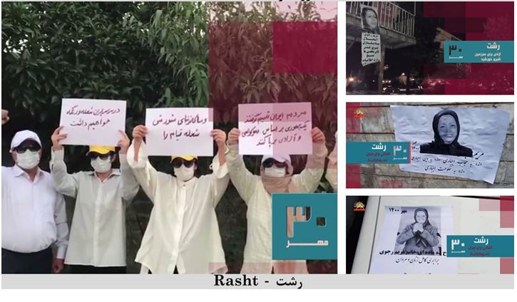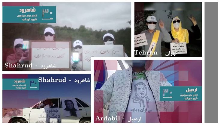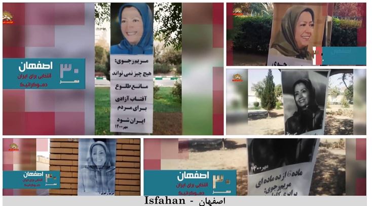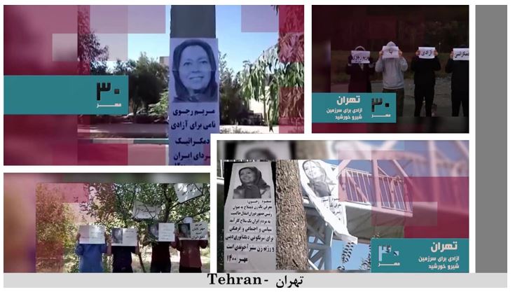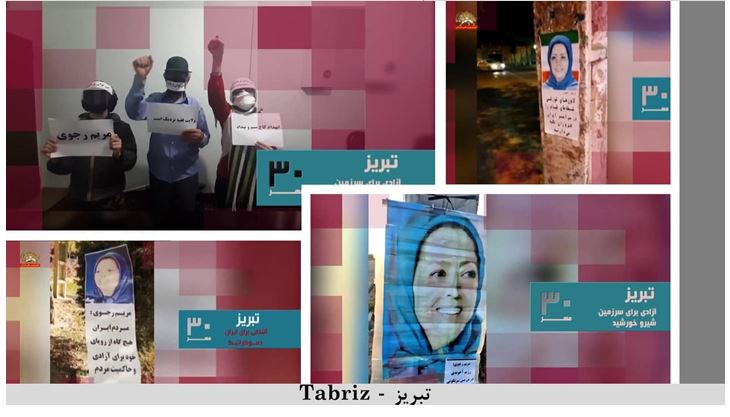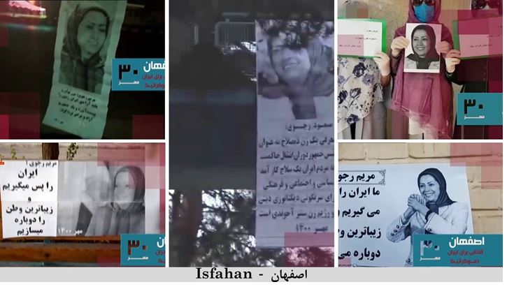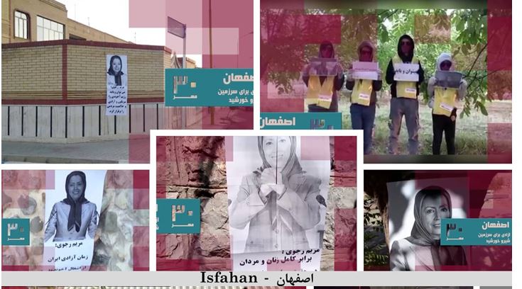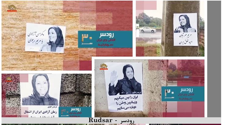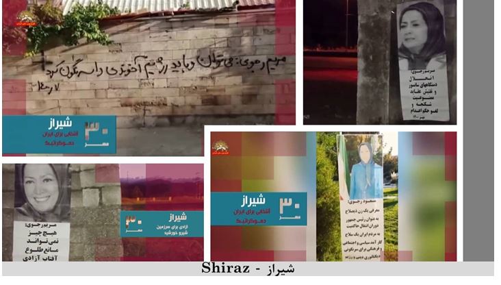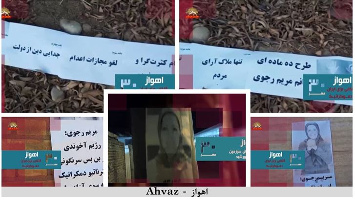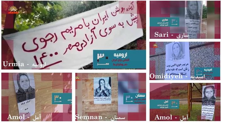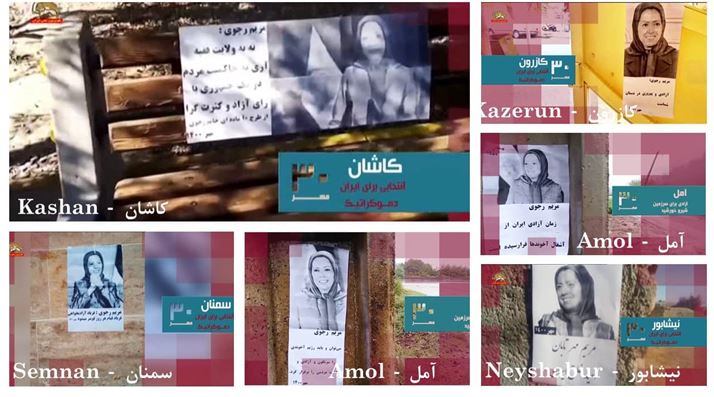 Les tracts et banderoles placés à haut risque sur les passerelles piétonnes au-dessus des autoroutes et des artères des grandes villes iraniennes comprenaient : « Maryam Radjavi : Le renversement du régime est inévitable. L’Iran sera libéré », « Maryam Radjavi : l’Iran de demain sera un pays de respect des droits humains », « Le plan en 10 points de Maryam Radjavi pour l’Iran libre de demain », « Maryam Radjavi: il faut et nous devons renverser le régime des mollahs et instaurer la liberté et la souveraineté populaire », « Maryam Radjavi : non au foulard obligatoire, non à la religion obligatoire, non au gouvernement obligatoire », « Maryam Radjavi : Le temps est venu pour l’Iran de se libérer de l’occupation des mollahs », « Maryam Radjavi : égalité complète des femmes et des hommes », « Maryam Radjavi : Non à la dictature religieuse, oui à la souveraineté populaire dans une république pluraliste aux élections libres », « L’avenir radieux de l’Iran avec Maryam Radjavi, en avant vers la liberté », « Maryam Radjavi : c’est maintenant au tour des femmes de se lever contre toutes les formes d’oppression », « Le peuple iranien a décidé d’établir une république fondée sur la démocratie et la liberté », « Maryam Radjavi, espoir du peuple iranien », « Liberté, démocratie avec Maryam Radjavi ».