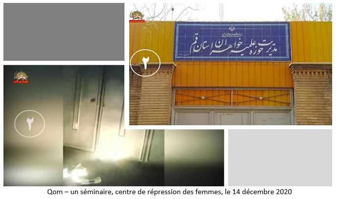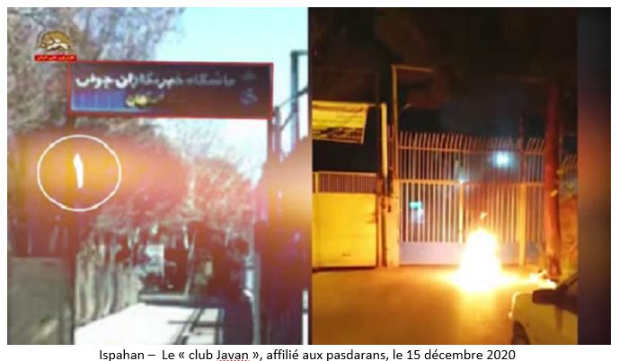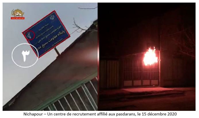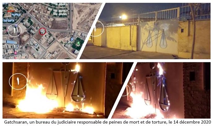 Entre les 12 et le 15 décembre 2020, des jeunes insurgés ont pris pour cible des centres de répression du régime à Ispahan, Lahidjan, Nichapour, Hamedan, Gatchsaran et Qom et ont mis le feu à leurs entrées.