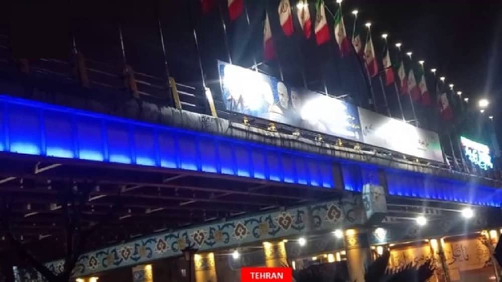 · Une bannière officielle sur le viaduc de l’autoroute Khavaran à Téhéran