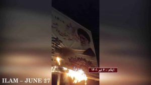 Lundi 27 juin, de jeunes insurgés ont poursuivi leurs activités visant à briser le mur de la répression en Iran. Ils ont mené des activités dans les villes de Téhéran, Machad, Sabzevar, Gonabad, Chiraz, Minab, Firouzabad (province de Fars), Kerman, Ilam, Gatchsaran et Behshahr. Ils y ont brulé des portraits de Khamenei, Qassem Soleimani, des panneaux d’affichage et des entrées de centres de répression et d’espionnage du régime.