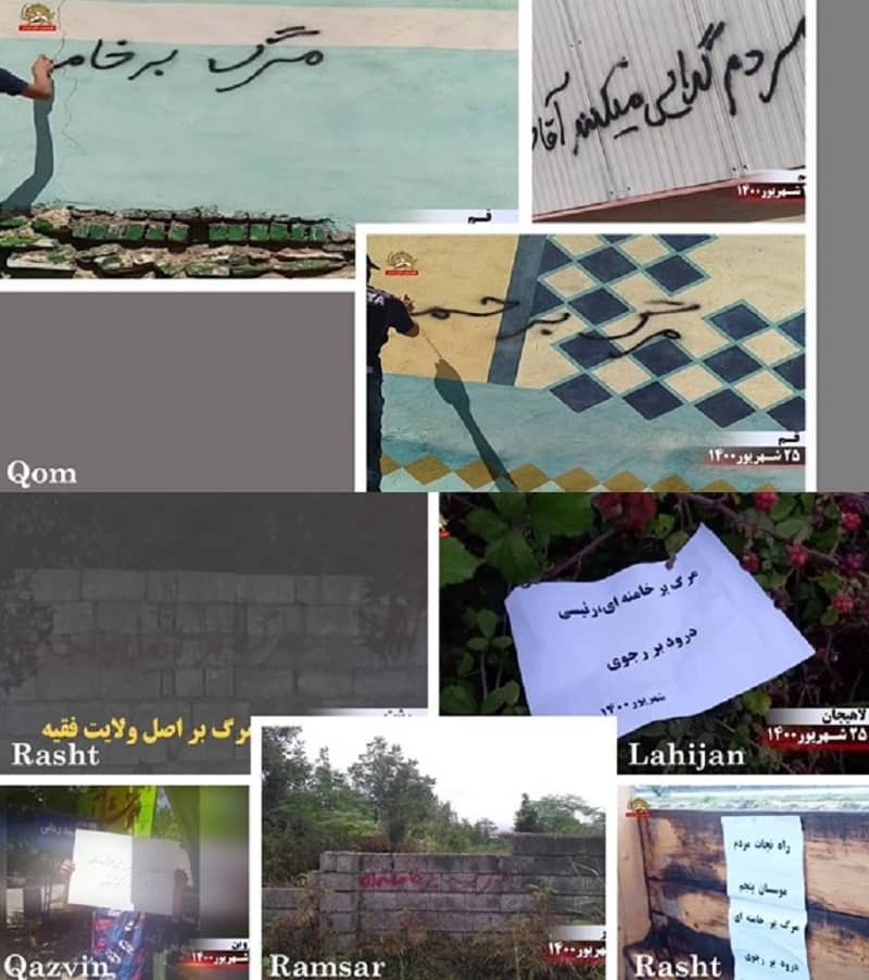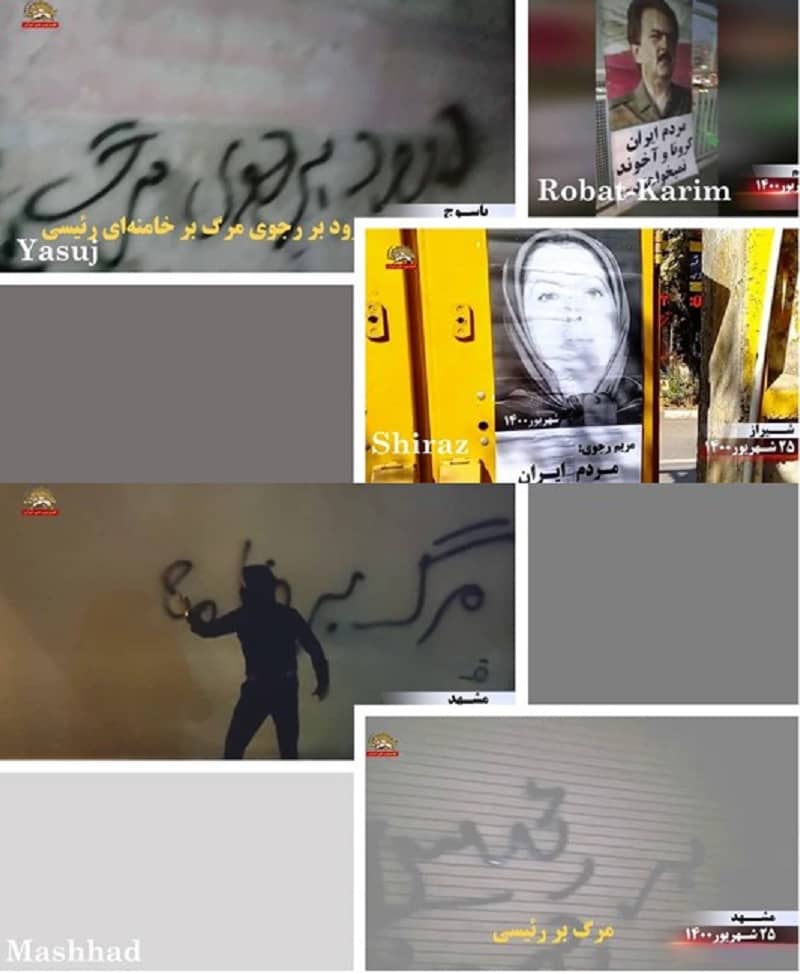 Le jeudi 16 septembre 2021, les unités de résistance et les partisans des Moudjahidine du peuple d’Iran (OMPI/MEK) ont appelé à des protestations et à des soulèvements pour obtenir la liberté et la démocratie en Iran en affichant des bannières et des pancartes et en inscrivant des graffitis.