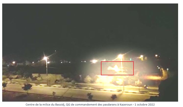 La nuit dernière, en soutien au soulèvement national et en réponse aux crimes des pasdaran, de jeunes insurgés ont visé à Kazeroun leur QG de commandement dans cette ville.