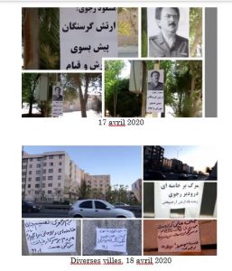 Des unités de résistance et de jeunes partisans des Moudjahidine du peuple d’Iran (OMPI/MEK) ont diffusé à une grande échelle des portraits et des appels de Massoud Radjavi, dirigeant de la Résistance iranienne, et de Maryam Radjavi, présidente élue du Conseil national de la Résistance iranienne (CNRI) à la solidarité nationale avec les malades du coronavirus. Ils ont également couvert les murs de slogans dans diverses villes. Ces actions se sont déroulées à Téhéran, Tabriz, Machad, Ispahan, Chiraz, Chahriar, Sabzevar, Hamedan, Behbahan, Karadj, Varamine, Mahchahr, Sanandaj, Kazeroun, Kerman, Kermanchah, Qazvine, Khorramabad, Gorgan, Chaboksar et Saveh.