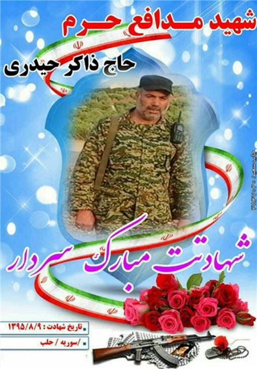 Le directeur des relations publiques du corps d’Achoura a déclaré que « Zaker Heidari, est le dix-septième martyr de la province d’Azerbaïdjan sur le front d’Alep », précisant qu’il commandait « l’artillerie à l’est d’Alep » et qu’il a été tué le 31 octobre.