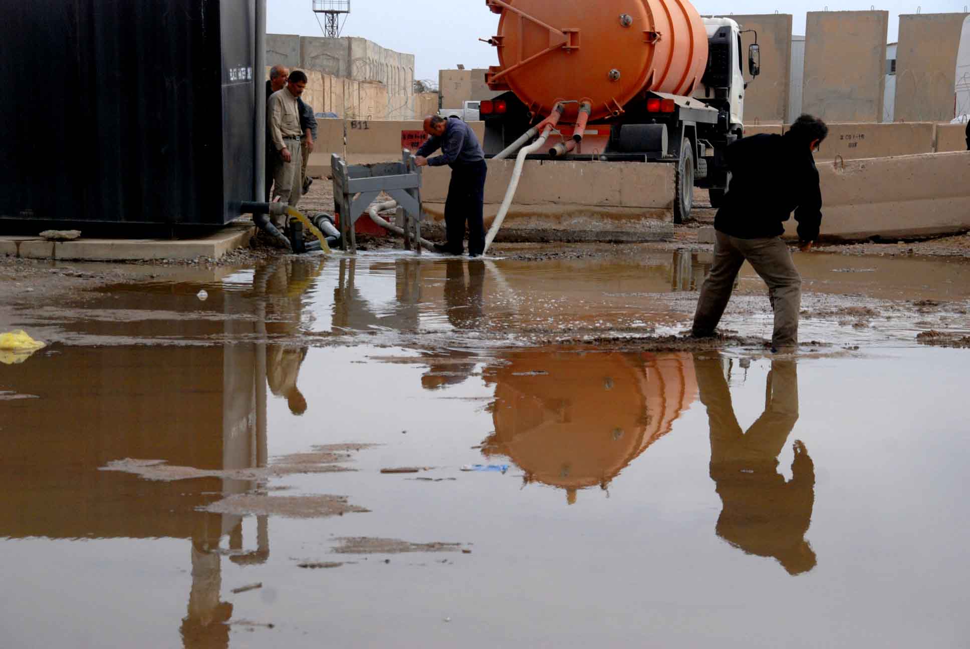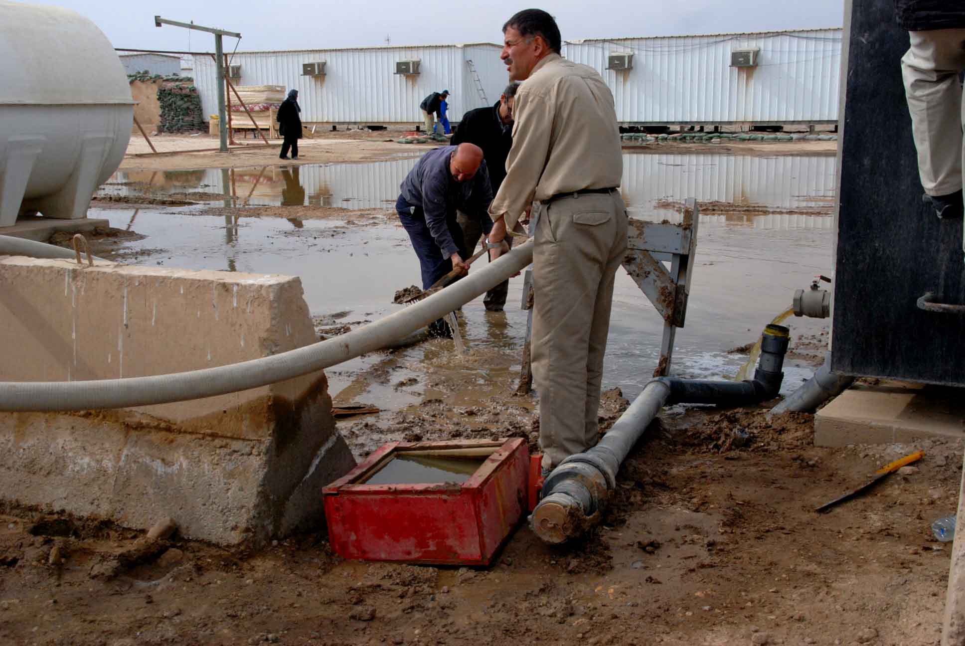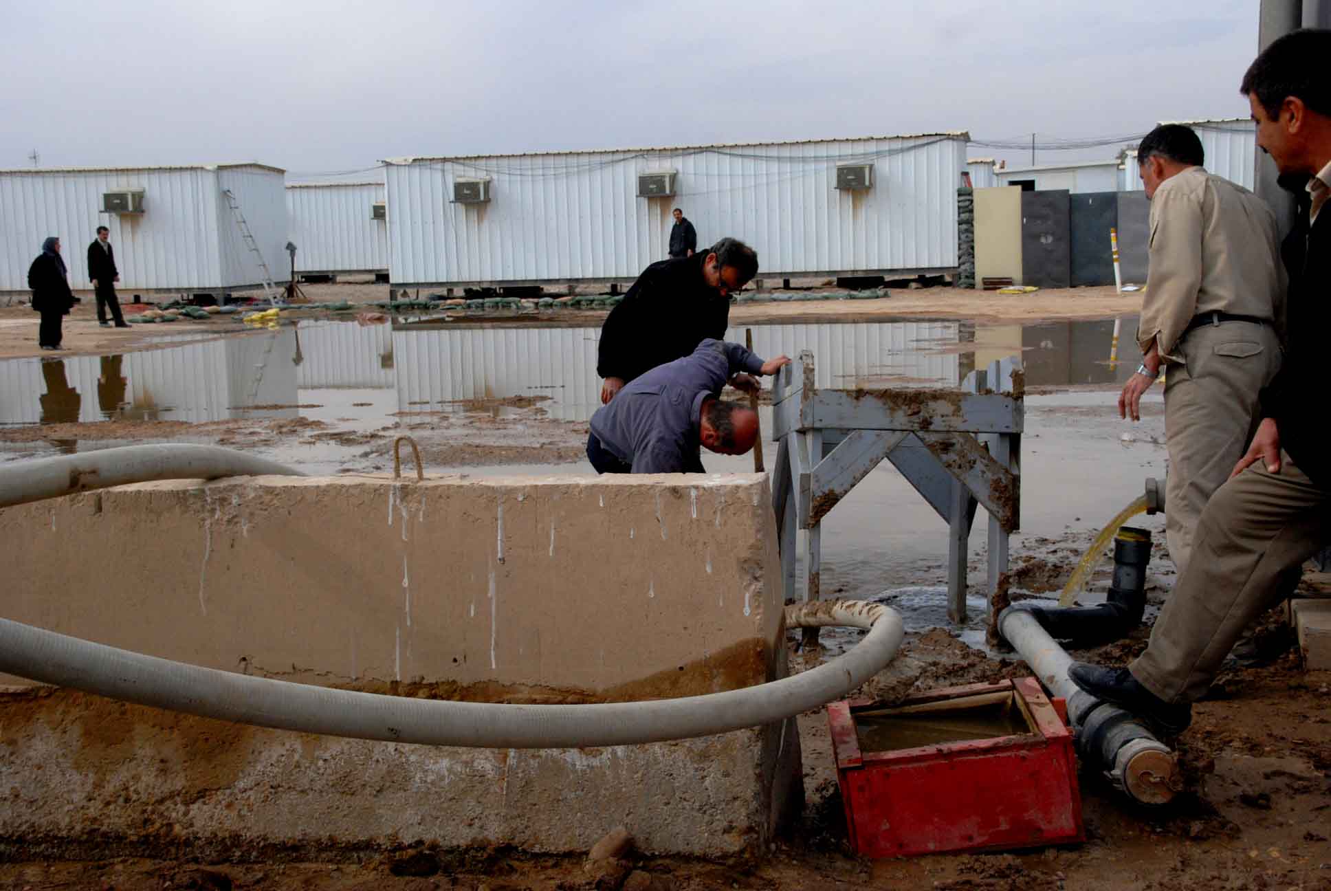 Dans l’après-midi du jeudi 23 février, le tuyau principal du réservoir des égouts du Camp Liberty a sauté et les eaux sales ont déversé sur une grande partie du camp. Dans un effort collectif avec des outils rudimentaires et des sacs de sable, les résidents ont pu stopper l’écoulement des eaux sales à un mètre des bungalows résidentiels (voir photos en annexe)Cet incident survenu simultanément à la présence de M. Martin Kobler, le Représentant spécial du Secrétaire général de l’ONU, et de George Bakoos, le représentant du gouvernement irakien, a été causé par la dégradation excessive de l’infrastructure et la négligence dans l’évacuation et pompage ponctuels du réservoir des égouts.