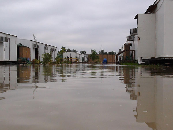 Malgré des milliers de rencontres, de requêtes, de lettres et d’appels des habitants et de leurs représentants à Liberty, Washington, New York et Genève, le gouvernement irakien s’oppose depuis un an et demi à tout minimum humanitaire et de sécurité à Liberty comme la construction de route, la construction de bâtiment, un système de drainage des eaux. Ainsi avec les pluies qui se sont abattues, la situation est devenue critique à Liberty (voir les photos).