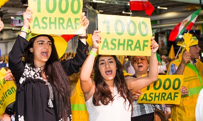 Un slogan jaillit de la foule : Un deux trois, mille Achraf, nous batirons mille Achraf, mille cités de la résistance, mille foyers du NON au régime des mollahs, du OUI à la liberté et la démocratie. Un mot d’ordre renforcé par celui de « démocratie liberté avec Maryam Radjavi ».