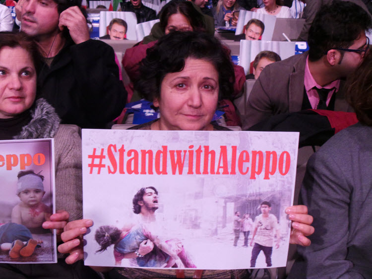 Une partie importante du programme a été consacrée à la Syrie et à la situation à Alep. L’ancien premier ministre algérien Sid Ahmed Ghozali, ancien porte-parole du gouvernement jordanien et ministre de l’Information, Saleh Qallab; Haitham Maleh, un dirigeants de l’opposition syrienne et président du Comité juridique de la Coalition syrienne; Michel Kilo, membre du bureau politique de la Coalition nationale de la révolution syrienne et des forces de l’opposition; le magistrat François Colcombet co-fondateur du CFID; Brita Hagi Hasan, président du Conseil municipal d’Alep; Anvar Malek écrivain algérien et président de l’observatoire international des droits de l’Homme et Fadel AbdulGhany, directeur du Centre syrien des droits de l’homme sont intervenus dans cette partie de la conférence.