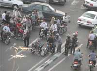 A Chiraz, en province,  la rue Mola-Sadra déborde de monde. Les automobilistes ont lancé leur propre manifestation avec un concert de klaxons et une opération escargot qui crée des bouchons. Les agents paniqués matraquent à tour de bras.