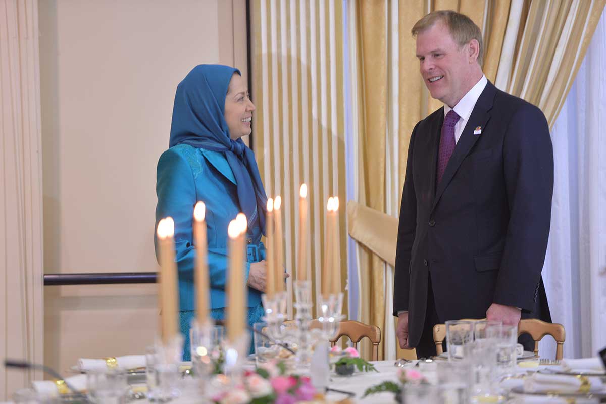 Maryam Radjavi a accueilli ses invités avant de les remercier pour leurs efforts qui ont permis de garantir la réinstallation en toute sécurité des Achrafiens : “Le changement de circonstances pour la Résistance iranienne, ses activités croissantes en Iran et la dégradation de la situation de la dictature, rendent clair qu’un changement de régime en Iran est à portée de main.