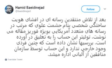 En juin 2019, le régime clérical et ses apologistes s’étaient livrés à une hyperbole à propos de ce qu’ils ont appelé un faux compte affilié à l’OMPI sous le nom de Heshmat Alavi. Ils avaient lancé une campagne de propagande surfant sur un article à succès de « The Intercept » et plusieurs émissions de radio en persan pour diffuser leur fausse histoire sur ce compte et ceux de l’OMPI. Cependant, quelques jours plus tard, après une enquête approfondie et s’être assuré que le compte d’Alavi était crédible et géré par une personne réelle, Twitter a rétabli le compte et dénoncé davantage la campagne de diabolisation. À l’époque, l’ambassadeur du régime à Londres, se faisant l’écho des « critiques » de l’OMPI, avait tweeté :