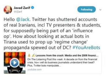 L’agence de presse officielle ISNA a cité l’ambassadeur du régime à Londres, Saeed Baeidinejad, le 16 septembre 2018, déclarant que l’OMPI, « produit chaque jour des millions de messages sous forme de hashtags subversifs, en utilisant les technologies de l’information les plus avancées ». Il avait appelé Twitter à « suivre la demande officielle du Dr Zarif de fermer les faux comptes qui envoient des hashtags subversifs contre l’Iran ».