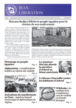 Iran Libération n° 357 : Maryam Radjavi félicite le peuple égyptien pour la victoire de son soulèvement