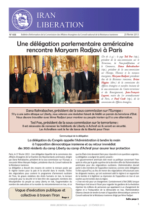 AccueilPublicationsPublications: Iran LibérationIran Libération N° 408 Publications: Iran Libération Iran Libération N° 408 Par Staff Writer 4 avril 2013 Facebook Twitter Pinterest LinkedIn Une délégation parlementaire américainerencontre Maryam Radjavi à Paris Article précédentIran Libération N° 407Article suivantIran Libération N° 409 Articles relatifs Publications: Iran Libération Iran Libération : Des dizaines de milliers d’Iraniens manifestent à Berlin pour une république démocratique la rédaction - 5 avril 2026 Publications: Iran Libération Iran libération : L’union des générations dans la bataille pour la liberté en Iran la rédaction - 5 avril 2026 Publications: Iran Libération « Iran Libération » numéro 473 : Pour stopper le soulèvement, le régime doit en éteindre les deux forces motrices la rédaction - 16 janvier 2023